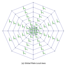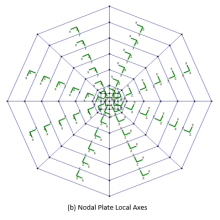 The default plate local axis is set to Global. To change this to Nodal, see Solution settings in the Model Settings.
