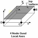 The A, B, C, and D joint entries are used to define the 4 corner joints of a quadrilateral element. (To define a 3-joint triangle element, just leave the D joint entry blank, or make it the same as the C joint.) The joints must all lie on the same plane and be entered in either a clockwise or counter-clockwise sequence.
