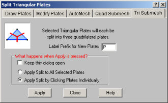 You can submesh the plates one at a time by selecting the Click to Apply option and then clicking on the plates you wish to submesh. You may also modify entire selections of plates by selecting the plates and then using the Apply to Selected option.