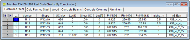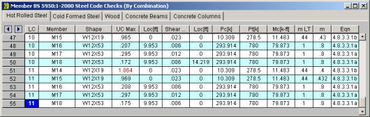 For enveloped results the combination that produced the listed code and shear checks is given in the"LC" column. The other values are the corresponding values and are not necessarily the maximums across all the combinations.