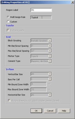Transfer - This is an option as to whether or not you want this region to transfer In Plane Loads. If you check these transfer options, the program will dump those loads above and below an opening into the adjacent regions for design.