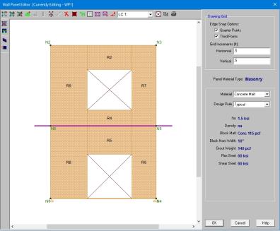 The Wall Panel Editor gives some specific information and options for modeling/analysis of masonry walls.