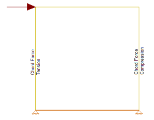 The chord design is based on forces that are calculated differently for Compression versus Tension. The tension chord force is calculated including the dead load stabilizing moment as per Section 4.3.6 of the NDS 2015 Special Design Provisions of Wind & Seismic. The compression chord force includes the only the tributary area of one stud spacing in the compression force. For Segmented design, the chord forces are found based on each region, and in FTAO and Perforated design methods the chord forces are determined for the entire wall.