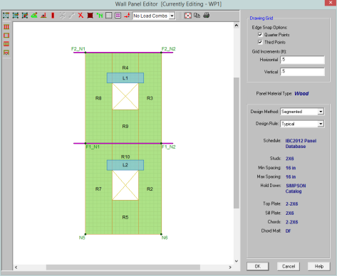 The Wall Panel Editor gives some specific information and options for modeling/analysis of wood walls.