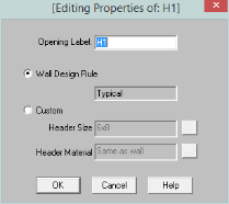 Custom - This allows you to define a header size and material that is different from the Wall Design Rule. You would only set a custom header if you have multiple headers in the same wall that are different sizes.