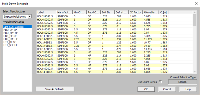 The NDS defines an adjustment factor associated with using stud material that is less dense than Douglas-Fir-Larch or Southern Pine. The program automatically accounts for this factor in the design of Wood Shear Walls.