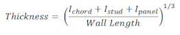 RISA uses an orthotropic plate element to de-couple the vertical and shear stiffness of the wood walls. The vertical stiffness will be based on the E value of the studs and chords as specified in the Materials spreadsheet and the thickness of the wall. The thickness is taken as