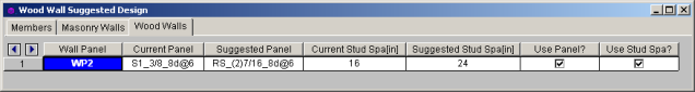 In the Suggested Design spreadsheet you will get a list of wall panels in your model that are not yet fully optimized, showing the panel and stud spacing of the last iteration and the program optimized values. From here you have the ability to Use Panel? or Use Stud Space? which means that you want to re-run the solution with the suggested design. You can choose this for each suggestion for each wall panel individually. Once you have these checkboxes checked appropriately press the