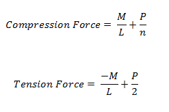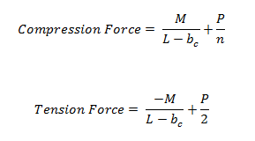 The Hold-Down force is calculated by finding the Tension chord force. In order to accommodate an unsymmetrical vertical load on the wall, the program adopted a more accurate approach by calculating the moment at the compression side first and then finding the resulting reaction on the tension side.