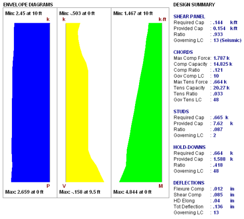 The Enveloped Results gives the code checks for all of the controlling elements in the wall and their associated load combinations.