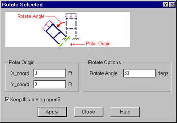 For example, say you wish to rotate the selected part of your model 90°. You would enter "90" as the rotate angle. For the polar origin, enter the coordinates of where you want the axis of rotation to pass through the XY plane.