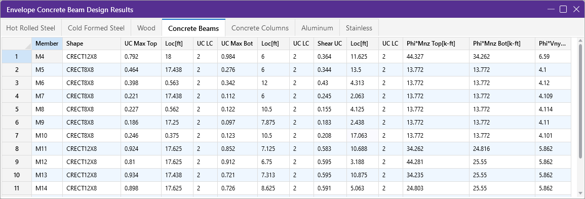 Concrete Member - Design Results