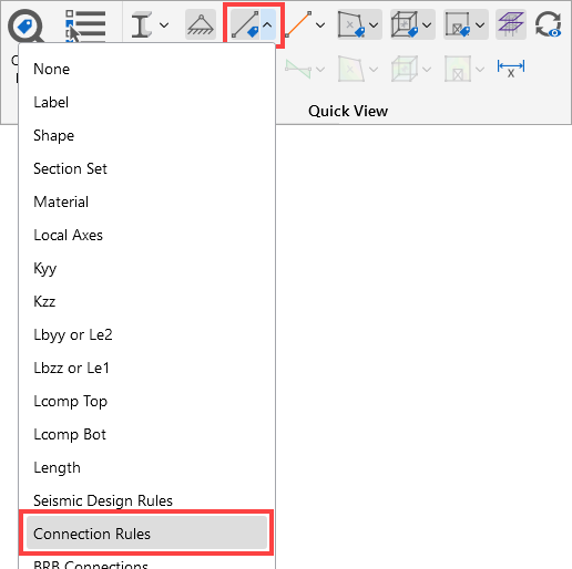 The ‘Quick View’ toolbar can be used to view the assigned connection rules directly on your model.