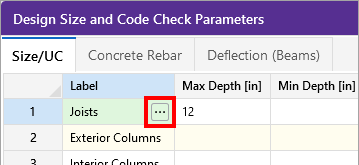 The Member Design Rules Spreadsheet records the parameters for the optimization. Optimization is performed for minimum weight, taking into consideration any depth, width, rebar limitations, etc. Note that the design rules input is one large spreadsheet, thus all of your design rules will be in the same place. Note that the dimensional rules and the reinforcement rules are all a separate entity. They have no interaction with each other in the program. They are simply all input into the same location. For example, your minimum member width rules will not be influenced by concrete beam reinforcement rules.