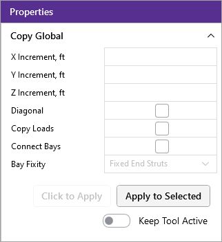 For example, if you indicate 3 feet in the Y direction then click on the member, it will be copied 3 feet in the positive global Y direction.