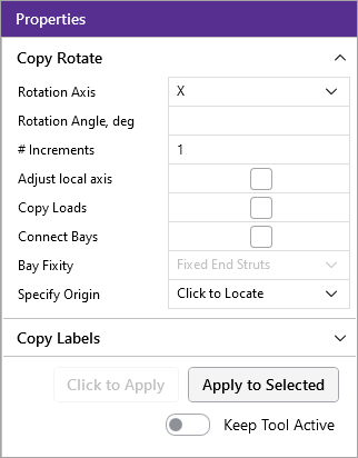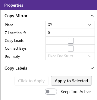 Checking the Connect Bays? box causes new members to be generated that connect all member end nodes of the originally selected model elements with the corresponding member end nodes in the newly created model elements. You can also indicate whether the new member end releases are to be Fixed or Pinned by selecting the corresponding option from the Bay Fixity section.