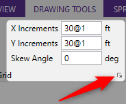 The ‘X’ grid origin lets you set the increment, in feet, for the X direction. For more information see Rectangular Drawing Grid. |