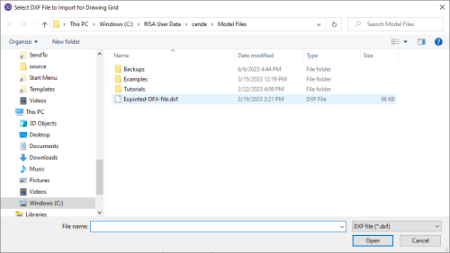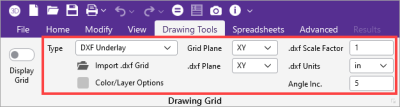 Import DXF lets you import a DXF drawing into the model view as a grid. The DXF image is imported so that you can snap to any point or intersection to aid in the drawing of your model. The DXF Import Drawing Grid supports Lines, Polylines, Circles, Arcs, Polylines with Arcs, and Points.