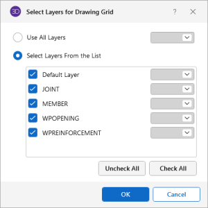 Once the file is imported, a Select Layers for Drawing Grid window opens.
