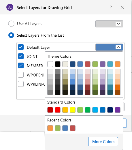 (Optional) Click on a layer’s color box arrow, to select a color other than the gray default.