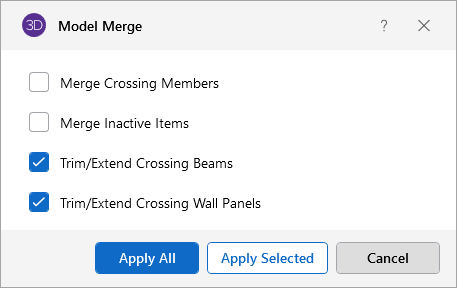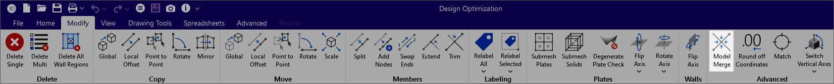 Click the Model Merge icon on the Modify ribbon in the Advanced section.