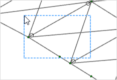Alternatively, dragging your mouse from right to left, will select all elements that you box through. This selection style is denoted with a striped blue line type.