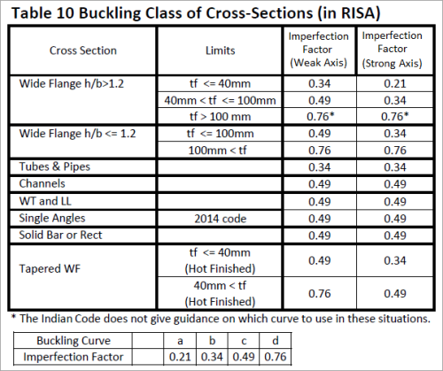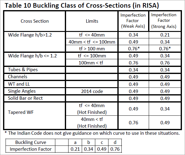 This factor is discussed in Section 7.1.2.2 of the 2007 Indian Design code and is used in the calculation of the axial compression. The following illustrates what RISA uses for the buckling curve from Table 7: