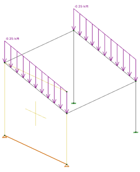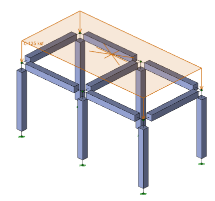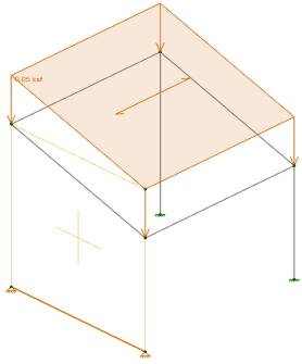 Area loads are loads that are applied to a planar area and automatically attributed to the members in that plane. This gives you the ability to model the loading effects on a membrane, such as live load on a deck system or wind on a curtain wall, without adding unwanted stiffness to the model. (To model load and stiffness You can use plate shell elements loaded with surface loads.)