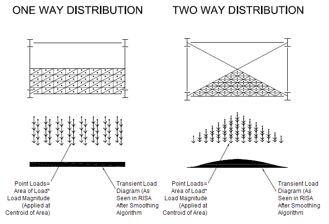 This results in a load distribution that agrees very closely with traditional hand calc methods.