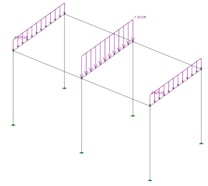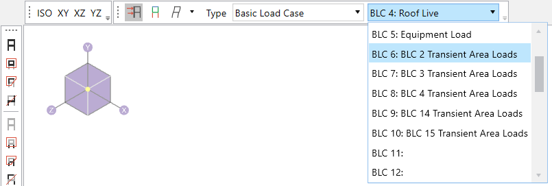 After solution, the resulting distribution of the area load is stored in the first available basic load case with “BLC # Transient Area Loads” as the description. They can be viewed graphically or in the spreadsheets as a basic load case. These loads are transient which means they are only a result of the area load and will be deleted when the results are cleared and re-determined each time you solve the model. The only purpose of these transient BLC's is to let you view the exact load attribution created by the program.