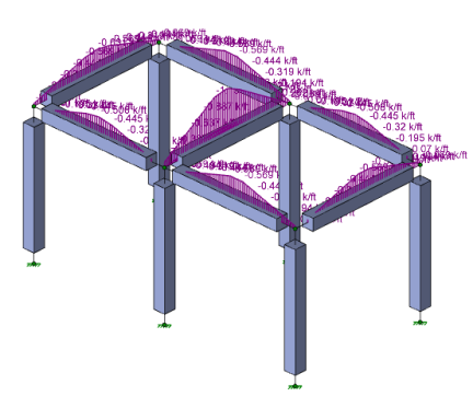 Note that the area load algorithm used by RISA-3D is very versatile in that it can work in any of the global directions in a three dimensional model, so that it can be used for vertical dead or live load modeling as well as wind loads. But it can add a fair amount to the analysis time when small mesh sizes are used with large models. Sometimes a small mesh is necessary to get the desired accuracy for the area load attribution.