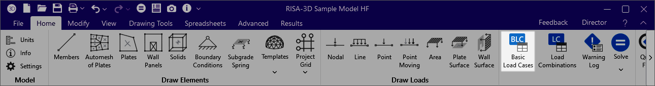 Any time you are applying or viewing loads, graphically or in the spreadsheets, they are assigned to the current basic load case. The current basic load case is displayed in the