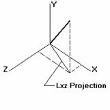 Keep in mind that global loads are applied without being modified for projection. For example, a full length Y direction load of 1 kip/foot applied to a 10 foot member inclined at 45 degrees generates a total force of 10 kips. Projected loads, on the other hand, are applied in the global directions but their actual magnitude is influenced by the member's orientation. The load is applied to the "projection" of the member perpendicular to the direction of the load. For example, a "PY" direction load is a projected load applied in the global Y direction. The actual magnitude of the load is the entered magnitudes reduced by the ratio L/Lxz, where L is the member's full length and Lxz is the member's projected length on the global X-Z plane. See the following figure: