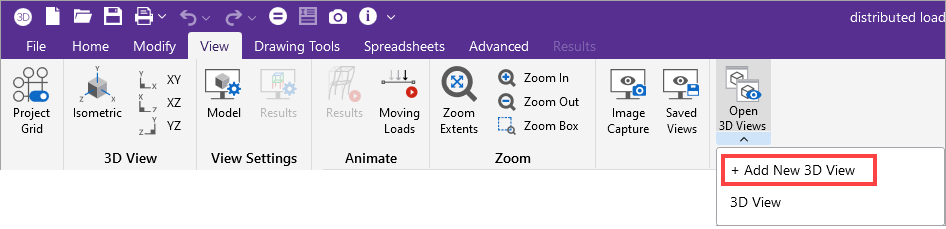 3. Choose + Add New 3D View from the menu.