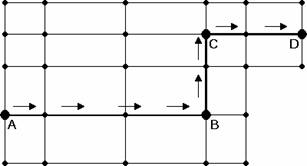 The last 10 fields are the node numbers that are used to define the load path for the moving load. The moving load feature is smart in the sense that it will try to always find a way to get from one node to the next node in the load path sequence. The load path taken will usually be the most direct route between the nodes. If you have a long series of co-linear members, or if there is only one valid path between your start and end nodes, you usually will only need to specify the first node and the last node in the series. If there are several members that branch from a node that are all part of valid paths to the next node in the sequence, the member with the lowest member number will be the one chosen. To control exactly which route is taken in this situation, use nodes at each intersection point. See the figure below: