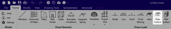 2. Click on the Plate Surface icon to bring up the plate surface load information in the ‘Properties Panel’.