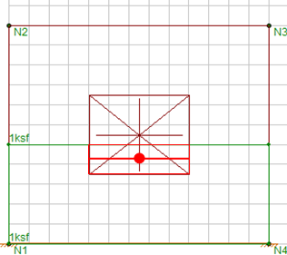When a surface load is applied to a wall panel with openings it is converted into equivalent nodal loads around the openings. The example below is a wall panel with an opening, and a surface load applied to the lower portion of the wall.