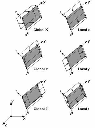 Element’s local x, y, or z direction.