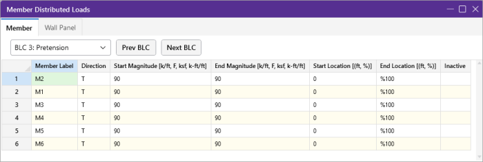 - Define a distributed load with a direction of T and a magnitude, in temperature.