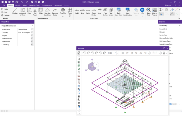 Modeling the structure takes place within model views and spreadsheets, each in their own window that may be moved around the workspace and sized as you wish. The ability to have multiple model views and multiple spreadsheets open at one time is a powerful feature. You can move the windows around by clicking the 3D View tab and dragging as desired.