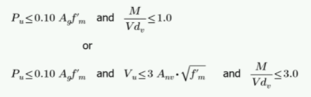Masonry Wall Panels with a Seismic Design Rule of “Special”, a shear span ratio (M/Vdv) ≥ 1, and an axial load ≥ 0.05f’mAn, shall be checked for a maximum reinforcement ratio equal to ρmax, calculated based on TMS 402 Equation 8-18: