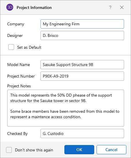 Project Notes is intended for information about the model that may be useful for the engineer or reviewer to refer to. This box is limited to 4000 characters.