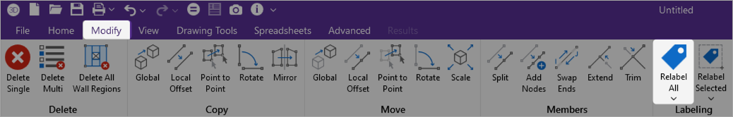 Display the unique name of each solid. You can assign a unique label to any or all of the solids. You can then refer to the solid by its label. Each label has to be unique. If you try to enter the same label more than once, you receive an error message. You can relabel solids at any time using the Relabel Allor Relabel Selected icons on the Modify ribbon. |