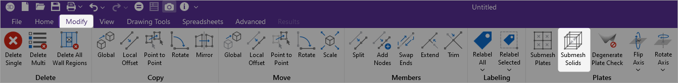 Click the Submesh Solids icon in the ‘Modify’ ribbon (as shown below).