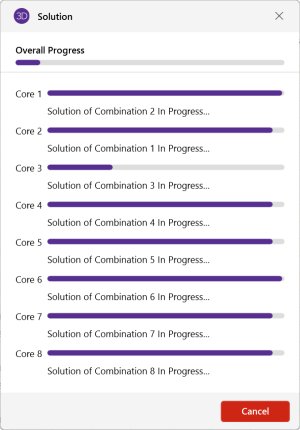 During the load combination portion of the solution the solution dialog will show progress for each core being used.