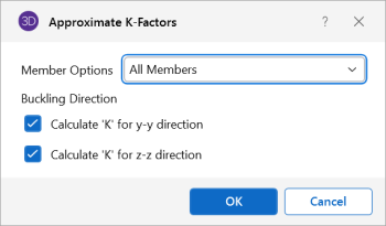 Remember that the K factors are approximations and you should check to make sure you agree with all K factors RISA-3D assigns. You can always override a K factor after an approximation by directly entering the value that you want in the appropriate field. Keep in mind that a subsequent approximation will overwrite any manually input values so you will need to override the approximation each time it is performed.