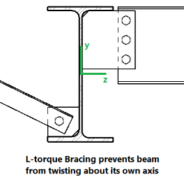 The L-torque value represents the distance between points which restrain the member against twisting about its own axis. This value is used to calculate the member's Torsional Buckling and Flexural-Torsional Buckling capacity. These limit states affect the member's axial compression capacity.