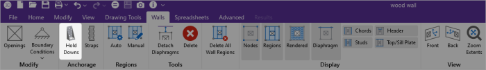 If there are custom locations that you want to add hold-downs or straps, you can do this from the Walls ribbon.