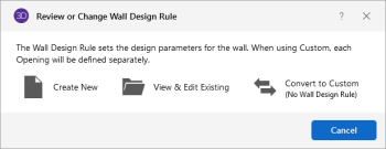 Create New lets you create a new Wall Design Rule to be applied to the wall.