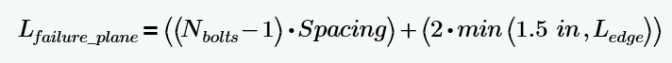 For the extended shear tab the length of the gusset failure plane is conservatively taken as the spacing between the bolts plus a 1.5” extension on both sides. In the instance that the bolt edge is less than 1.5”, the program will use that bolt edge distance instead.